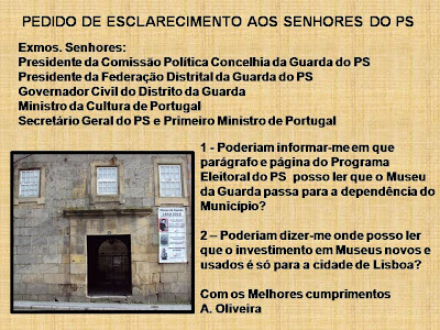 Queria mandar uma mensagem ao Senhor Presidente da Comissão Política Concelhia da Guarda do PS e também ao Senhor Presidente da Federação Distrital da Guarda do PS.