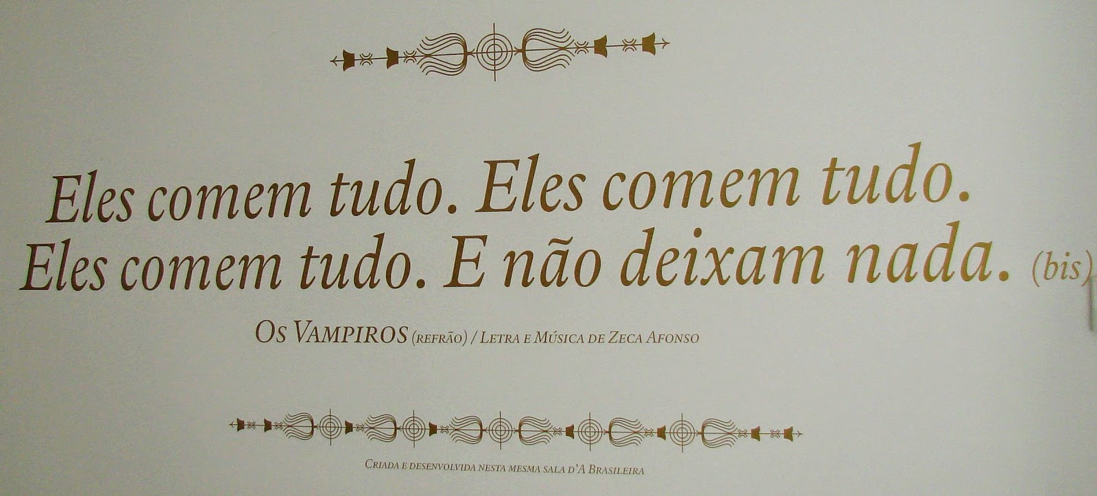 Fotografia de uma parede do Café Brasileira em Coimbra, onde José Afonso escreveu os vampiros.